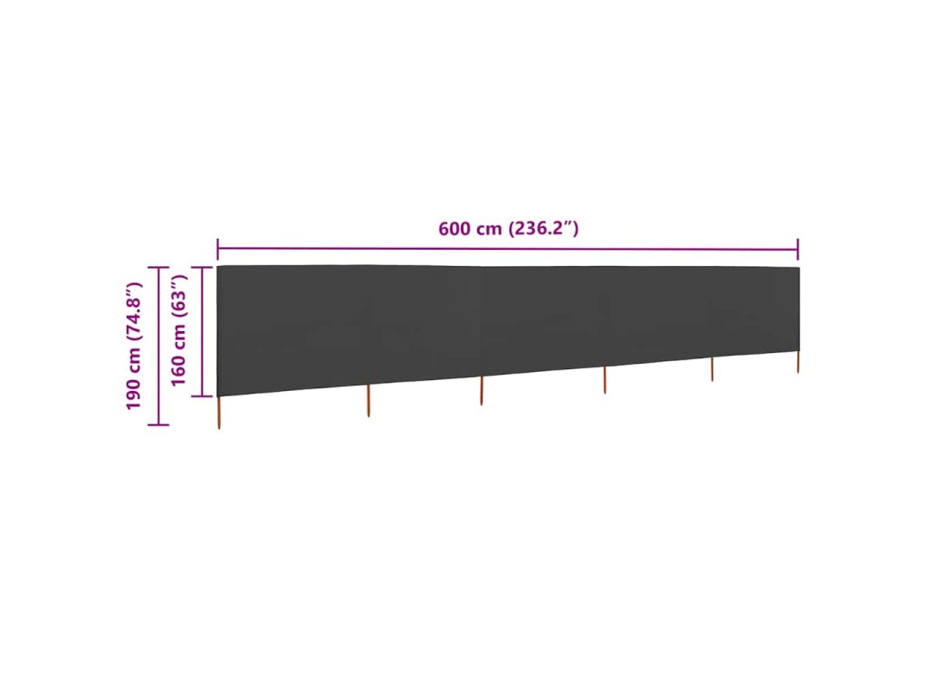 Multidom 5-panelová zábrana proti vetru látková 600x160 cm antracitová