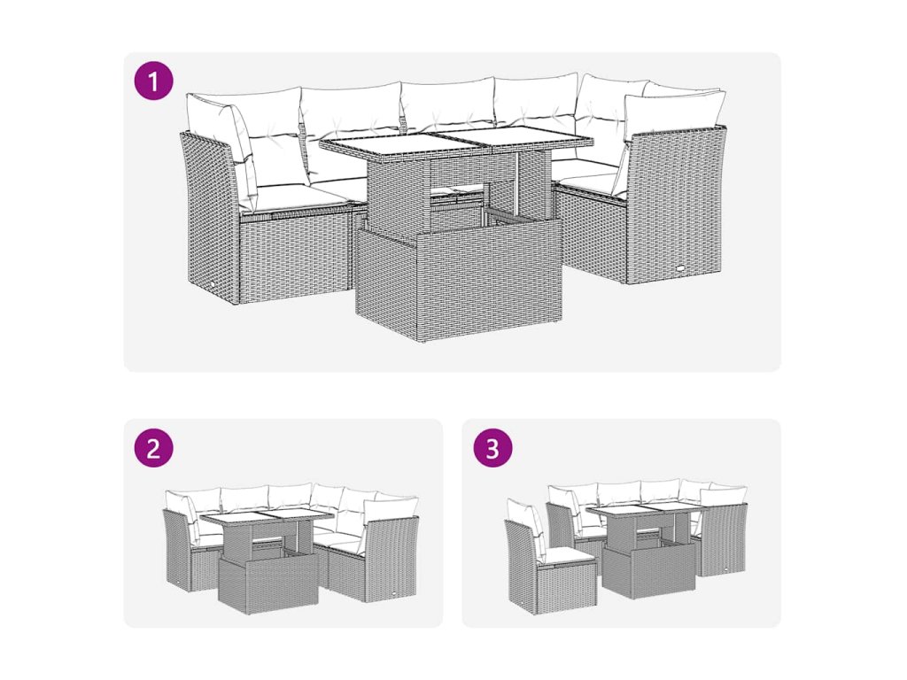 - Modulárny dizajn: Táto súprava vonkajšieho nábytku má modulárny dizajn, vďaka čomu je úplne flexibilná a ľahko sa premiestňuje, takže si môžete vytvoriť prispôsobené usporiadanie vonkajšieho nábytku.