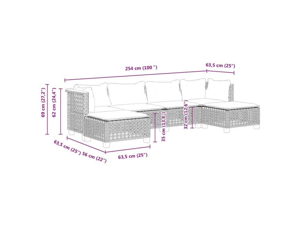 Multidom 6-dielna záhradná súprava pohoviek s vankúšmi béžová polyratan