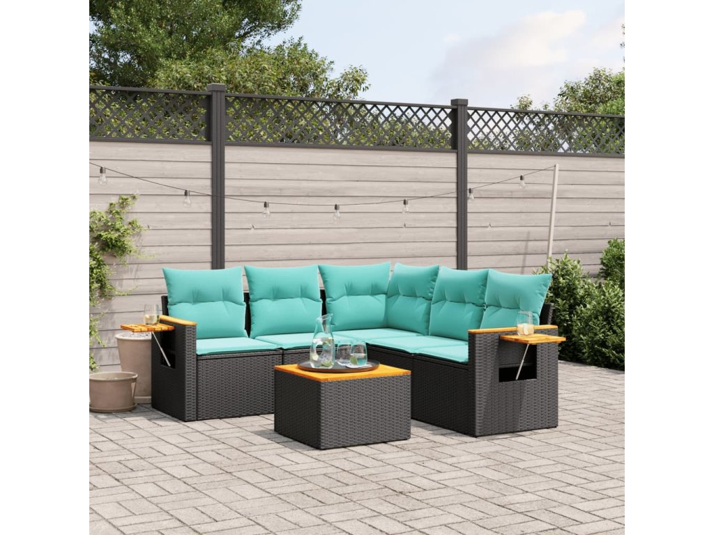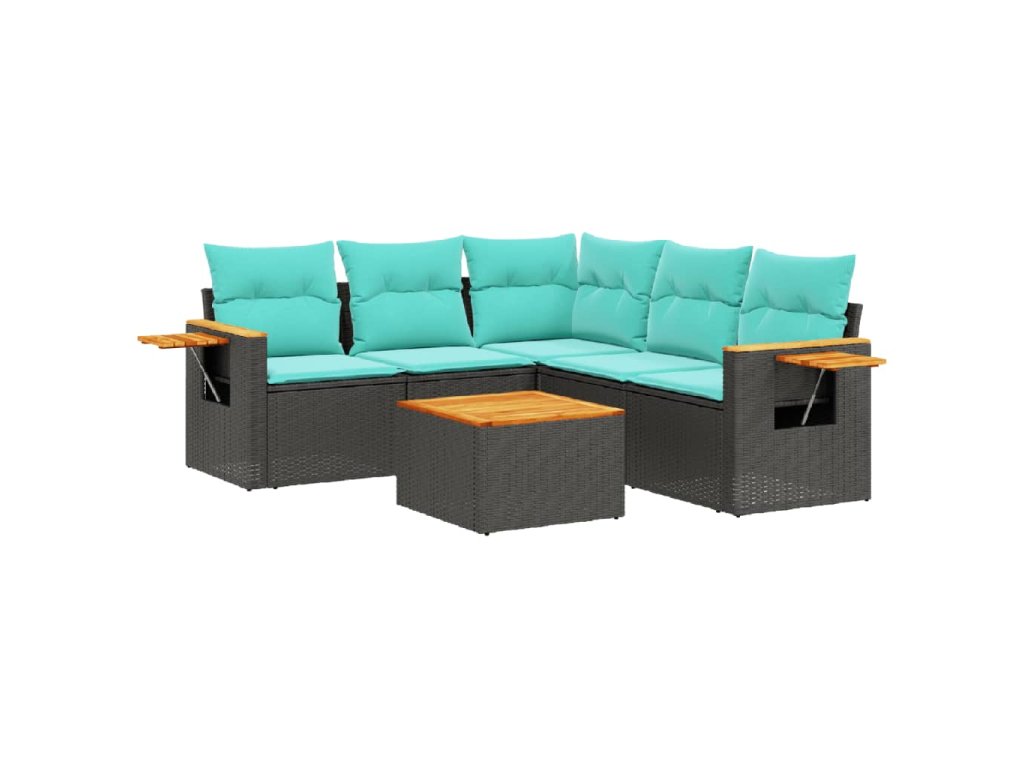 Multidom 6-dielna záhradná súprava pohoviek s vankúšmi čierna polyratan