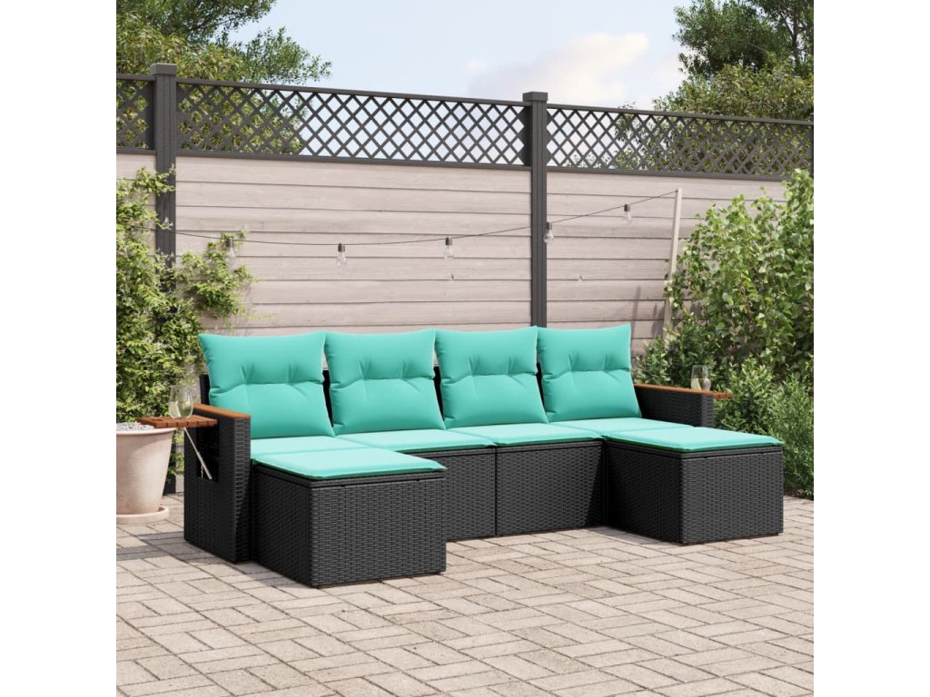 Multidom 6-dielna záhradná súprava pohoviek s vankúšmi čierna polyratan