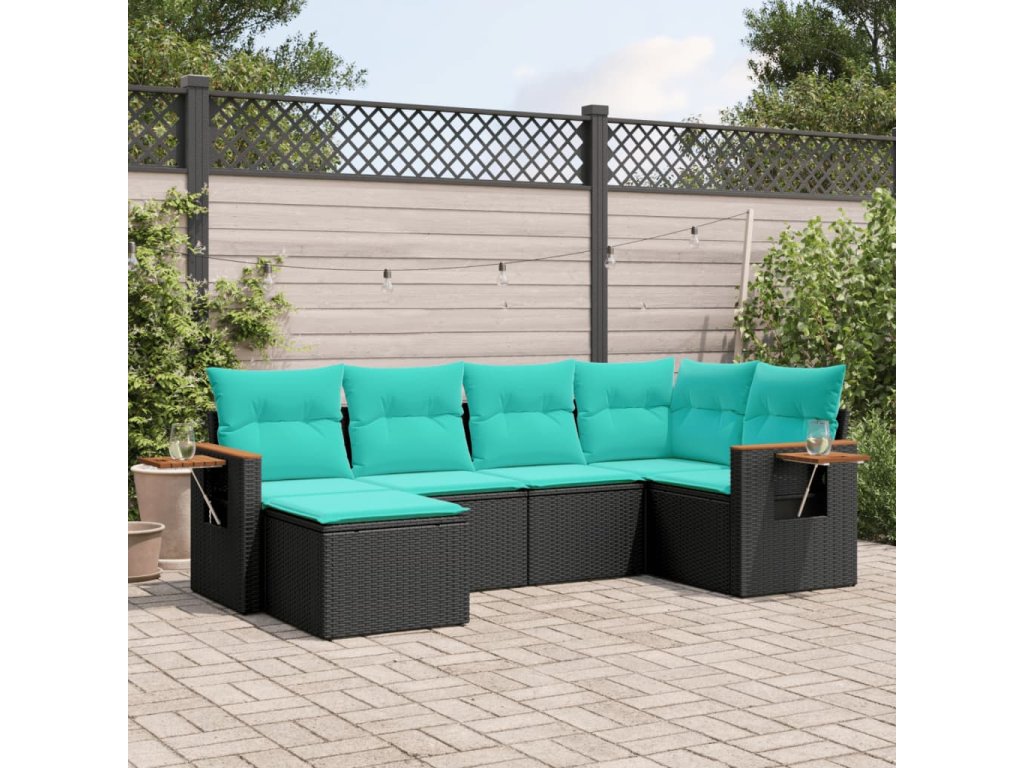 Multidom 6-dielna záhradná súprava pohoviek s vankúšmi čierna polyratan