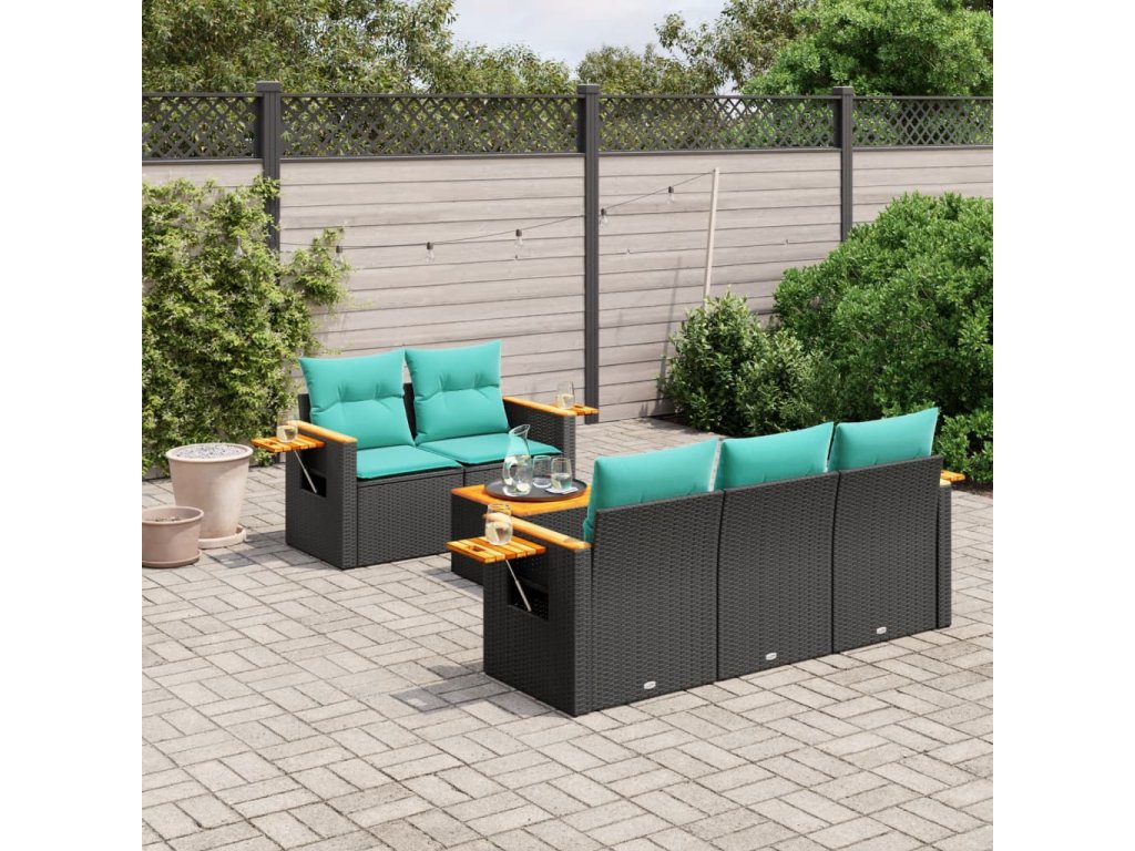 Multidom 6-dielna záhradná súprava pohoviek s vankúšmi čierna polyratan
