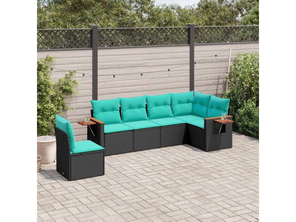 Multidom 6-dielna záhradná súprava pohoviek s vankúšmi čierna polyratan