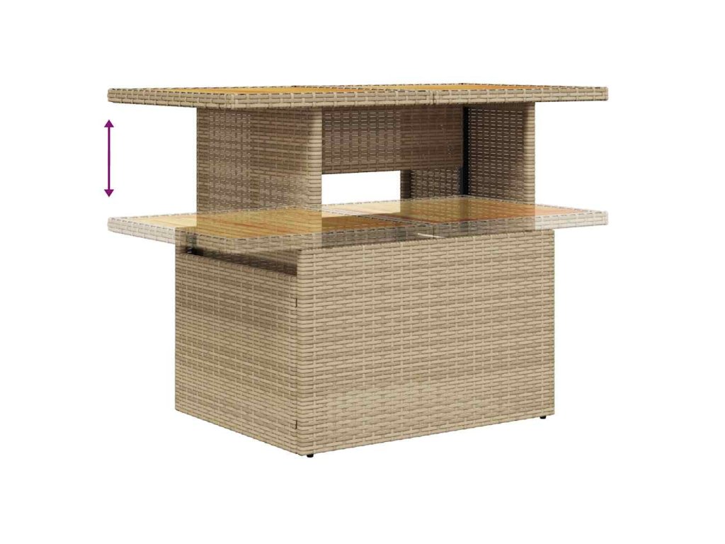 - Materiál: PE ratan, práškovaná oceľ, masívne akáciové drevo s olejovým náterom