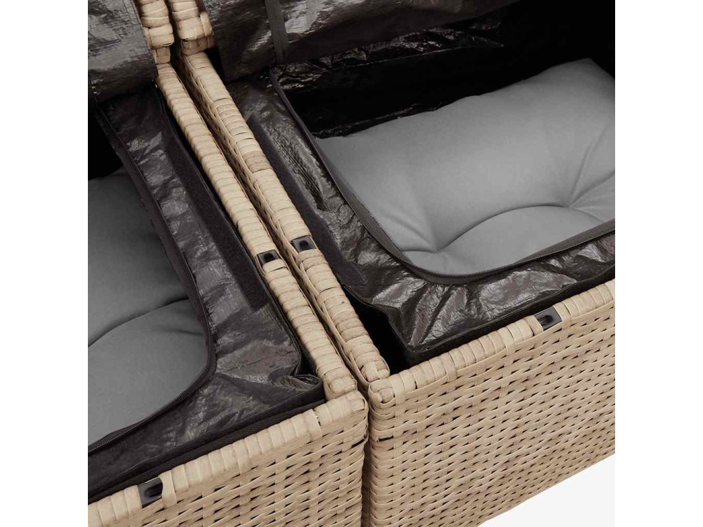 - Úložná funkcia s vodeodolnou taškou: Každé záhradné sedadlo má úložný priestor pod sedadlom, doplnený o vodeodolnú tašku na uloženie vankúšov, hračiek a iných predmetov. Vnútorné tašky majú vrchný kryt a dajú sa bezpečne pripevniť k sedadlám pomocou suchých zipsov pre väčšiu stabilitu.