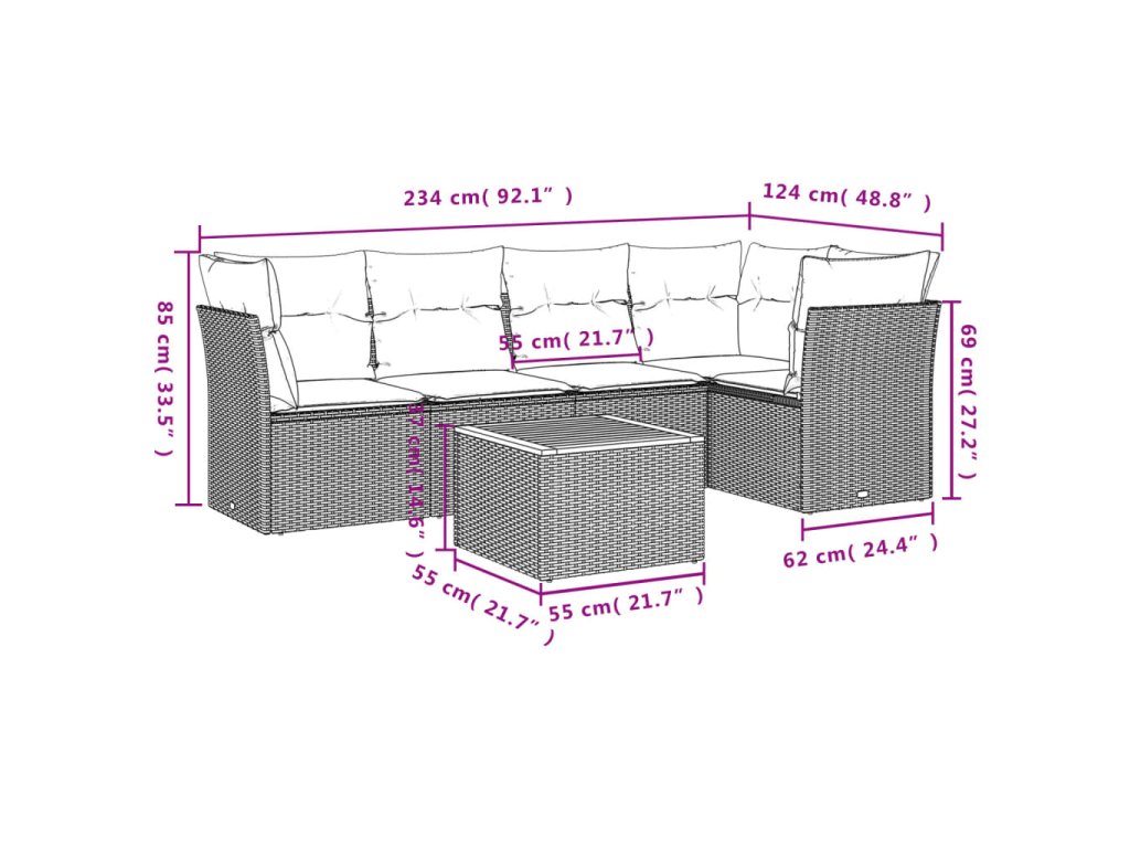 Multidom 6-dielna záhradná súprava pohoviek s vankúšmi sivá polyratanová