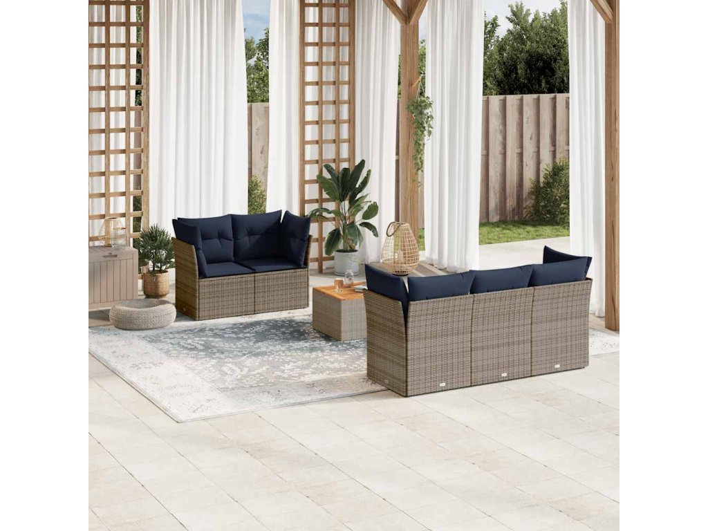 Multidom 6-dielna záhradná súprava pohoviek s vankúšmi sivá polyratanová