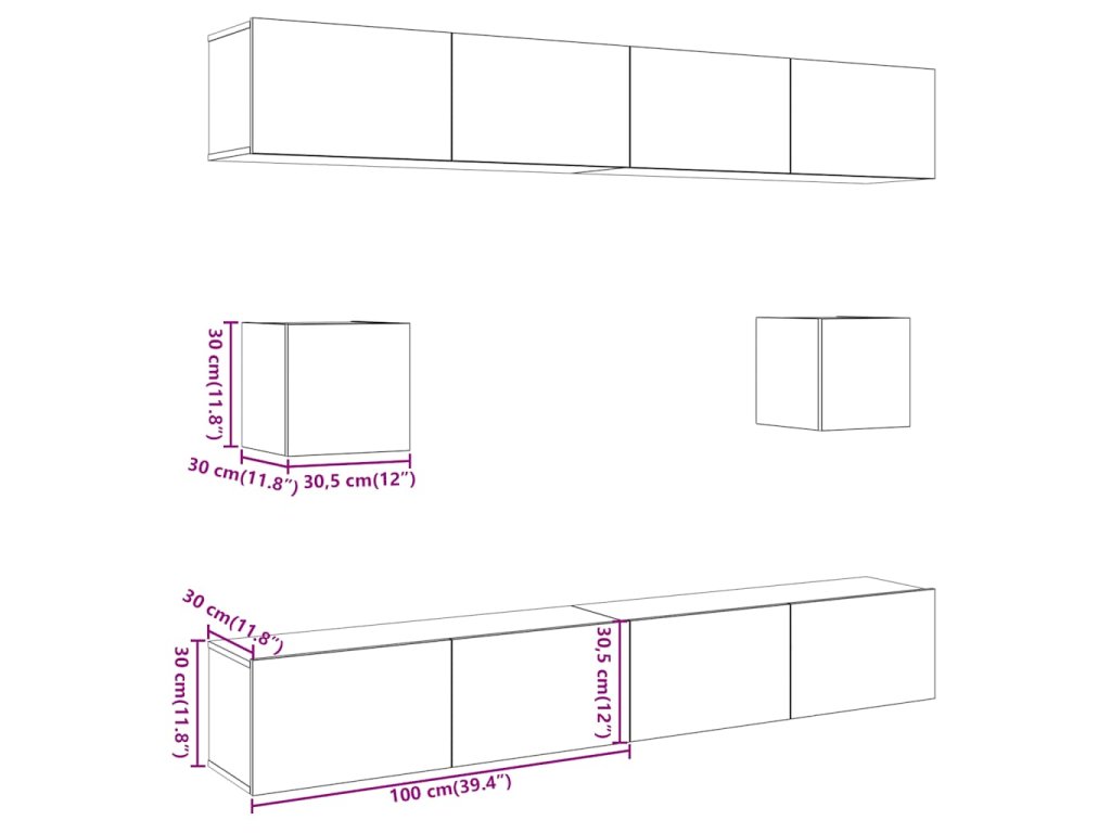 Multidom 6-dielne TV nástenné skrinky dymový dub kompozitné drevo