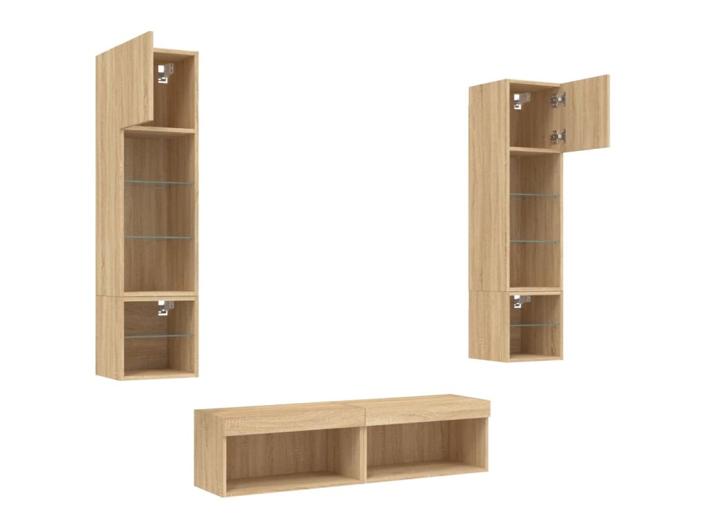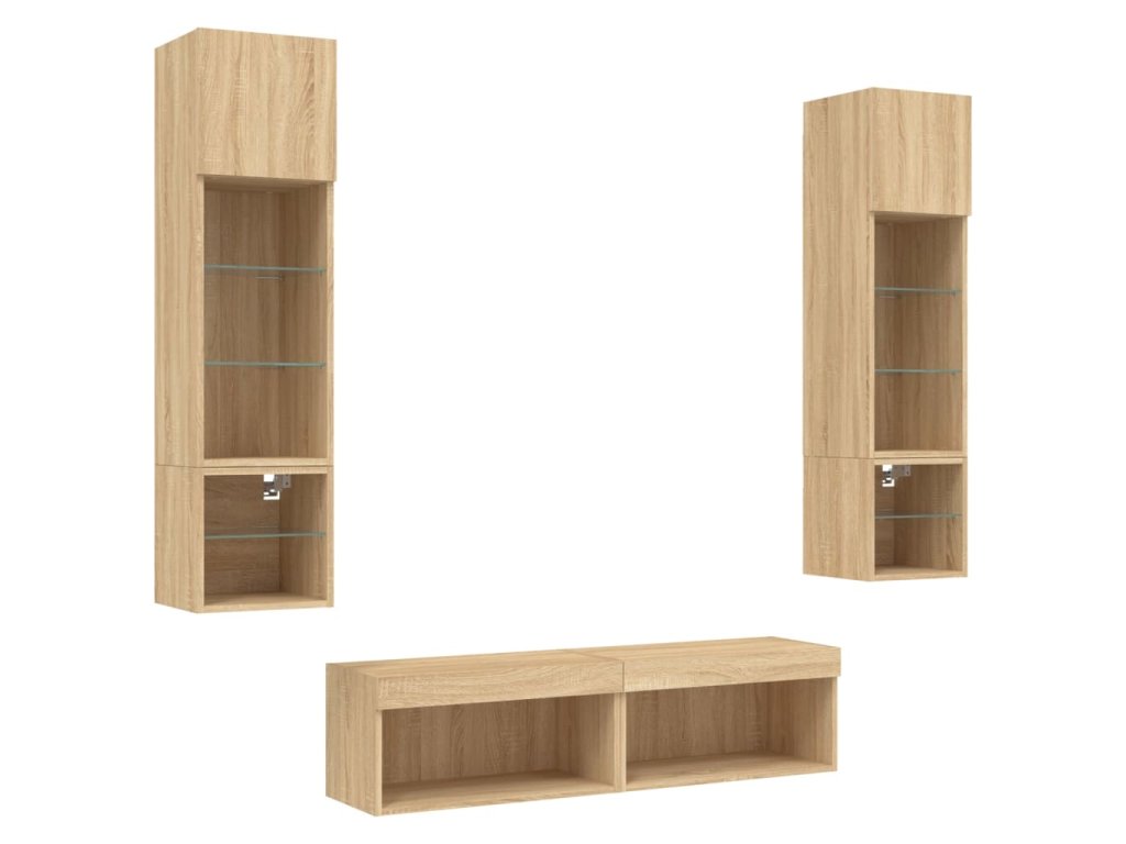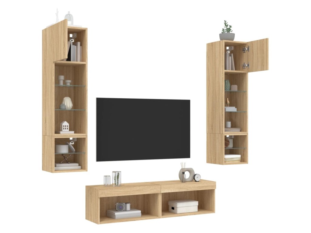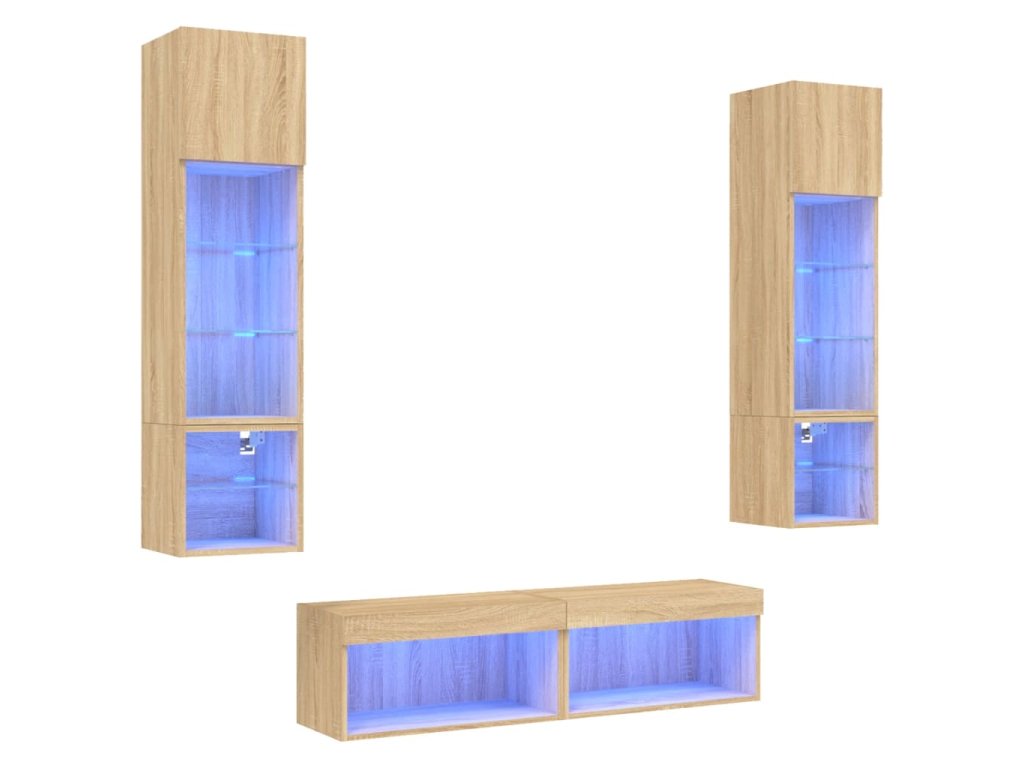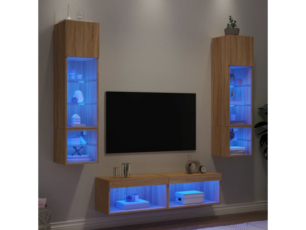 Multidom 6-dielne TV nástenné skrinky s LED dub sonoma kompozitné drevo