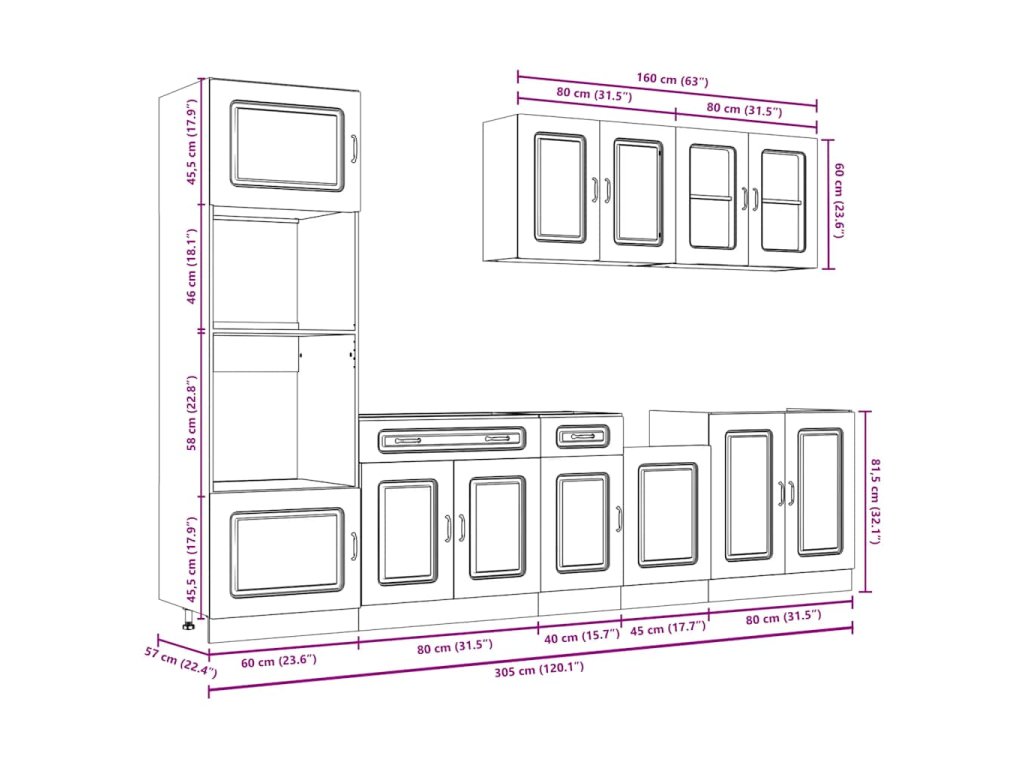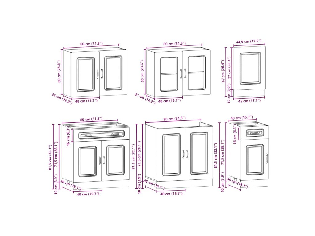 Táto 7-dielna kuchynská súprava skriniek s elegantným dizajnom vám umožní optimálne využiť priestor v kuchyni, pretože vám poskytne množstvo miesta na odkladanie vašich osobných vecí!