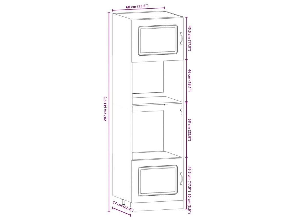 - 1 x Kuchynská skrinka: 60 x 57 x 207 cm (Š x H x V)