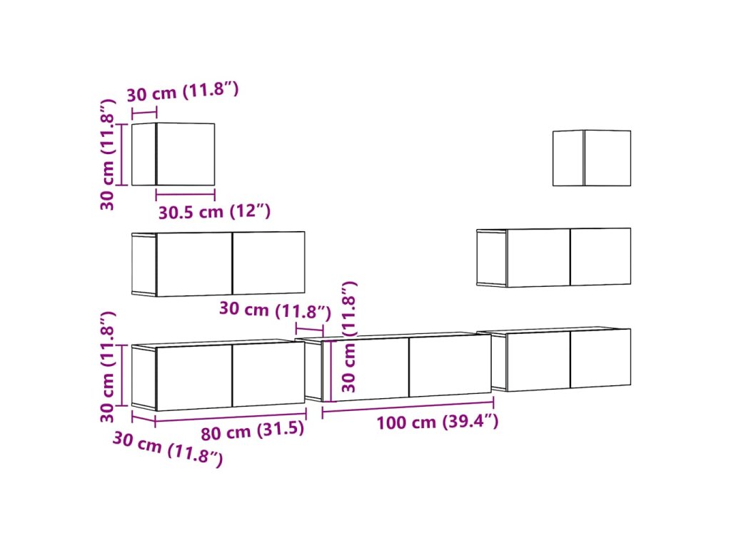 Multidom 7-dielna súprava nástennej TV skrinky, kompozitné drevo