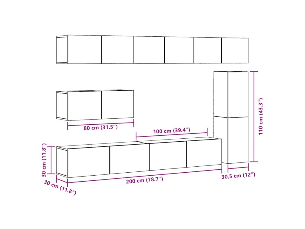 • 4 x TV skrinka: 80 x 30 x 30 cm (Š x H x V)