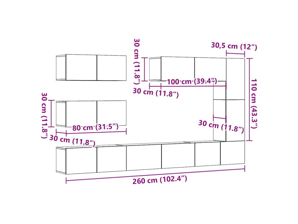 Multidom 7-dielna súprava nástennej TV skrinky, kompozitné drevo