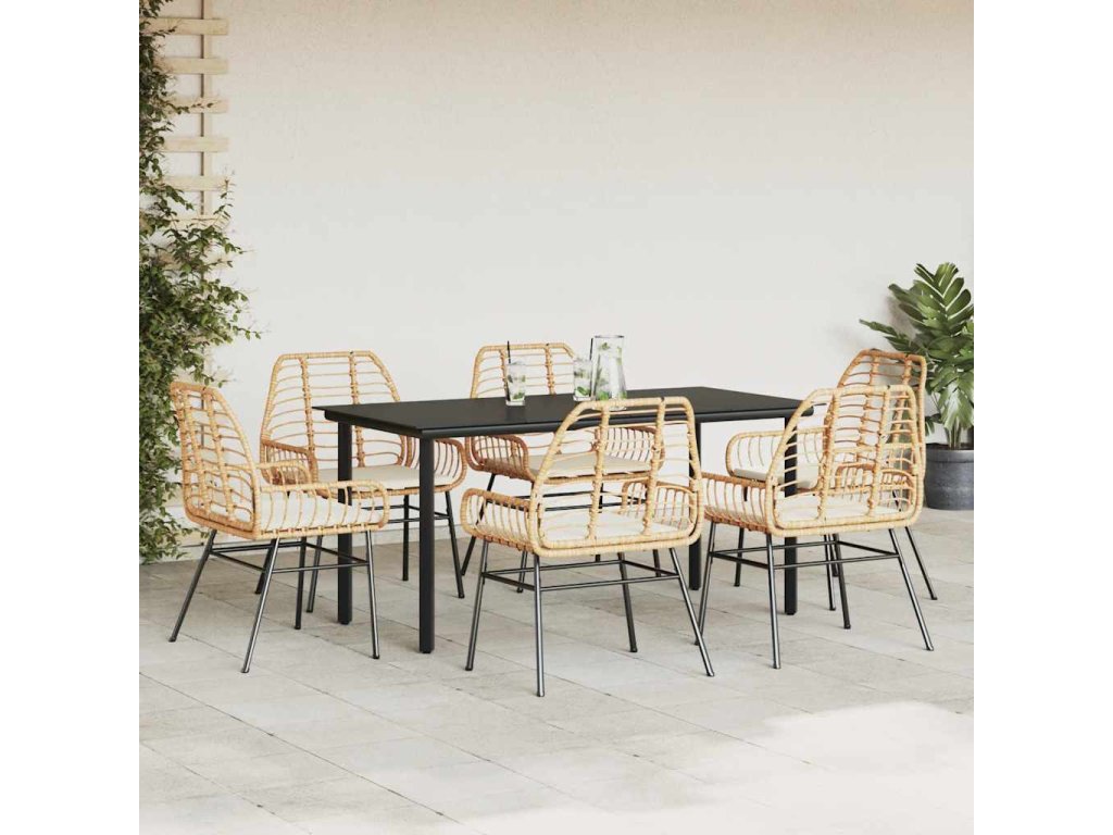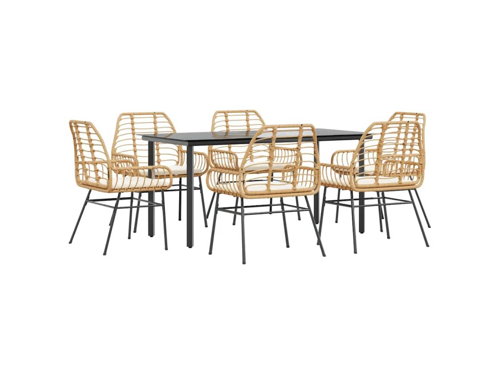 Multidom 7-dielna záhr. jedálenská súprava vankúše hnedá polyratan sklo