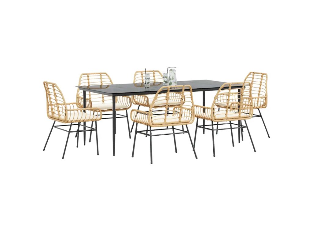 Multidom 7-dielna záhr. jedálenská súprava vankúše hnedá polyratan sklo