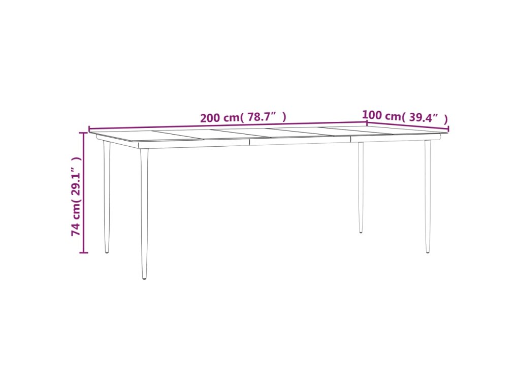 - Rozmery: 200 x 100 x 74 cm (D x Š x V)