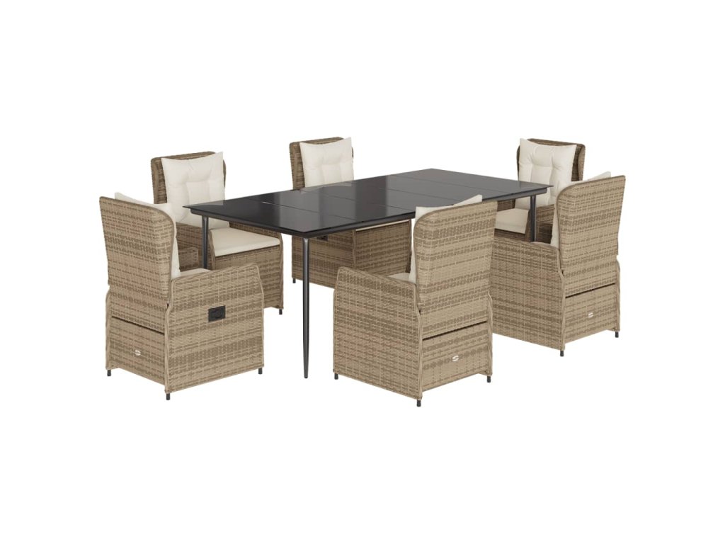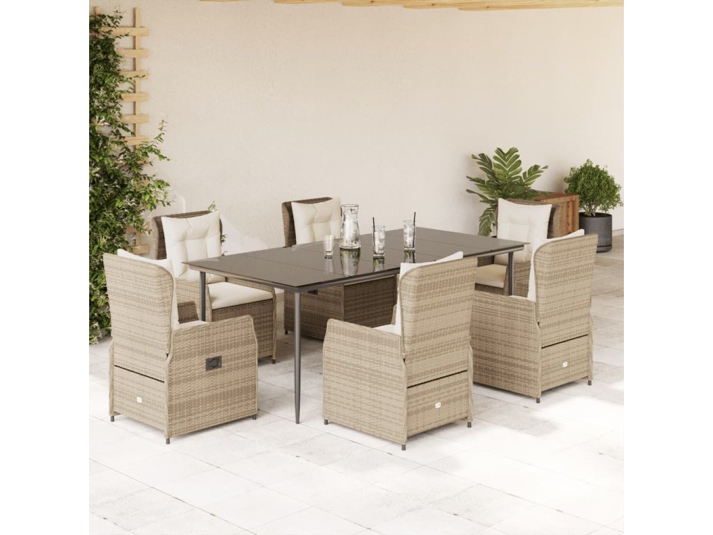 Multidom 7-dielna záhradná jedálenská súprava a vankúše béžová polyratan