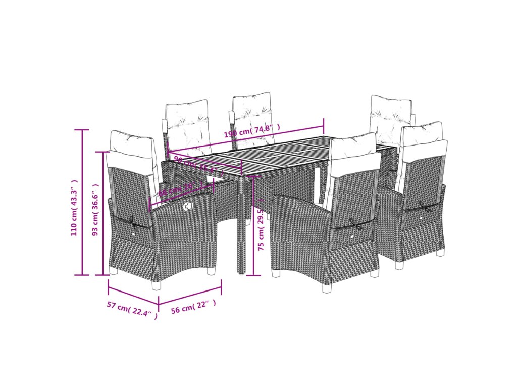Multidom 7-dielna záhradná jedálenská súprava a vankúše čierna polyratan