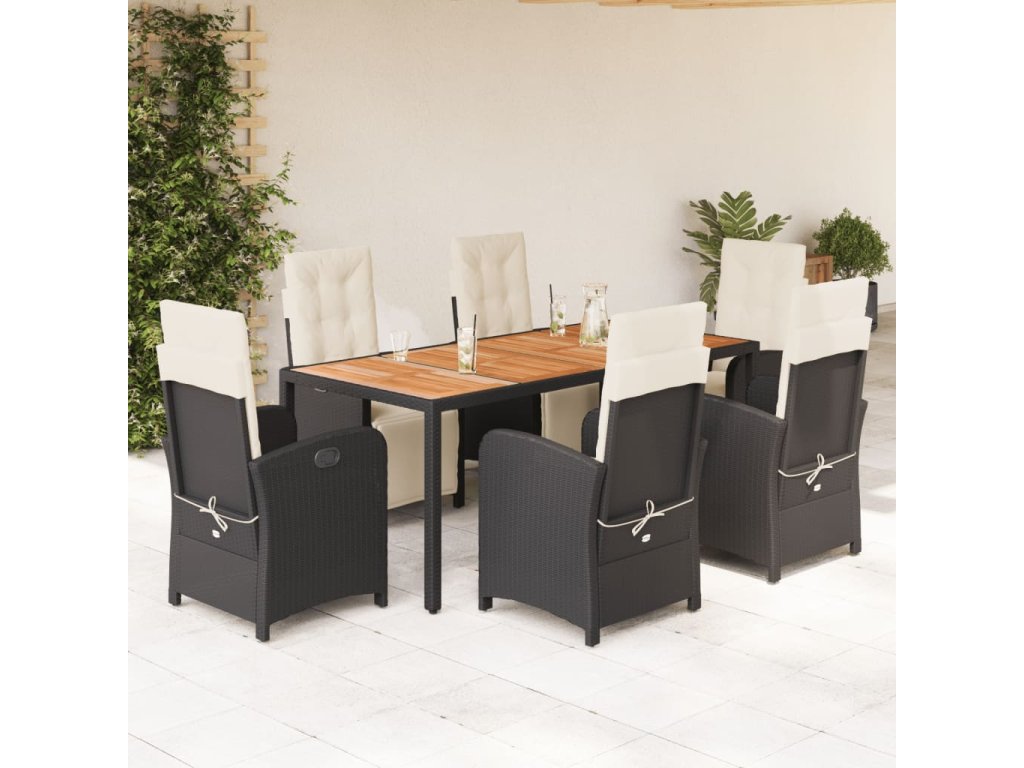 Multidom 7-dielna záhradná jedálenská súprava a vankúše čierna polyratan