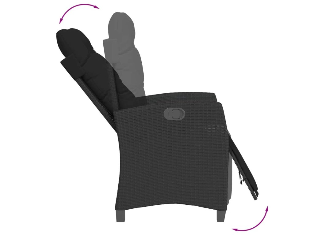 - Nastaviteľné operadlo a podnožka: Toto záhradné sedadlo má rukoväť. Opierku chrbta a podnožku môžete nastaviť do ľubovoľnej polohy zatiahnutím za rukoväť a rýchlo ich vrátiť do pôvodnej polohy.