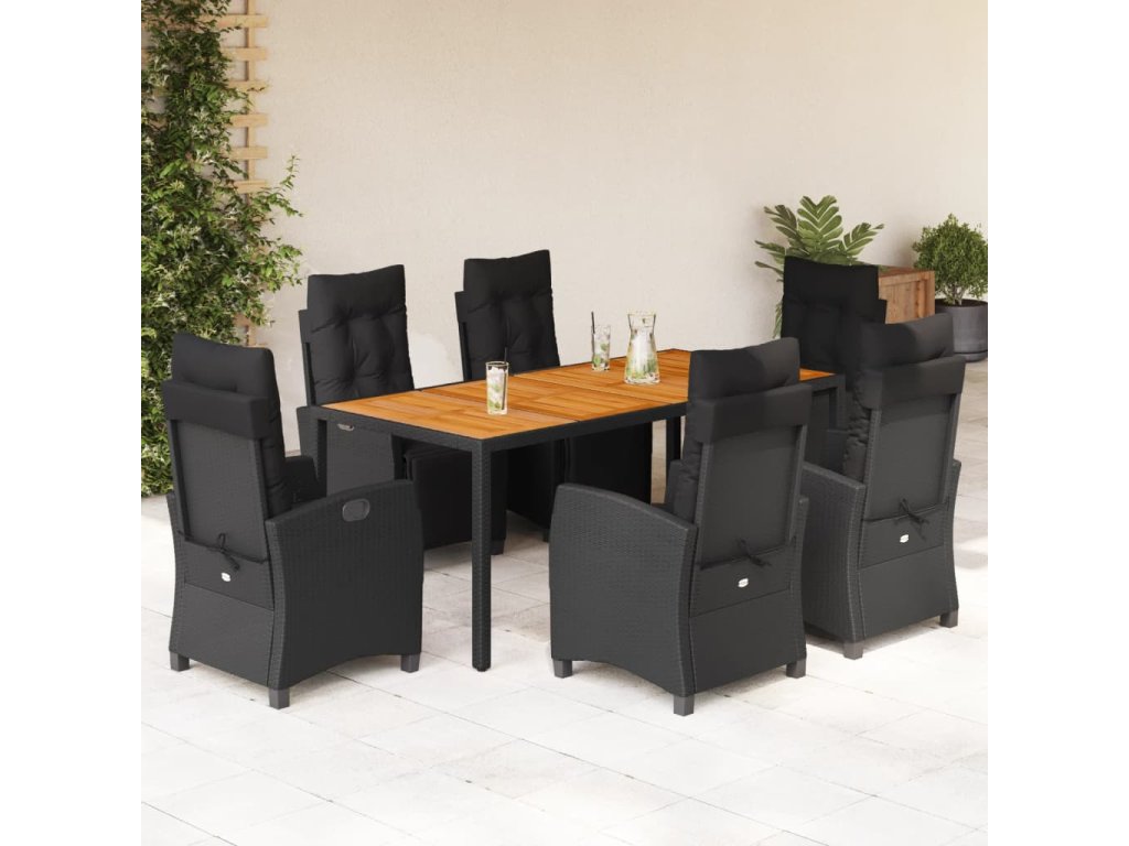 Multidom 7-dielna záhradná jedálenská súprava a vankúše čierna polyratan