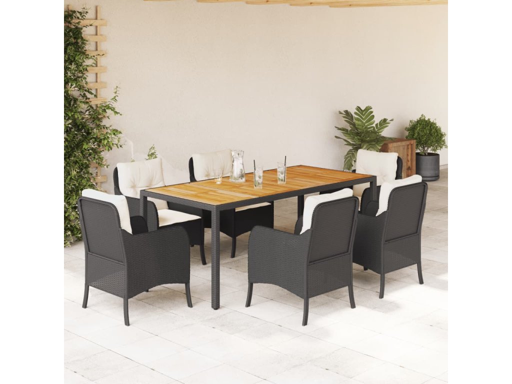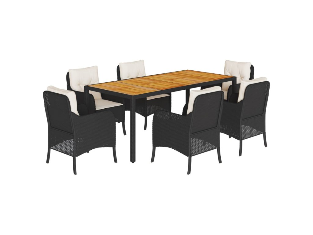 Multidom 7-dielna záhradná jedálenská súprava a vankúše čierna polyratan