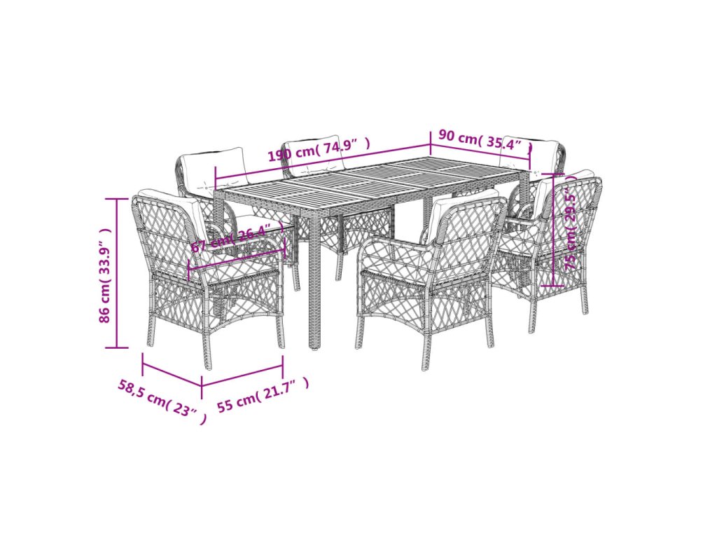Multidom 7-dielna záhradná jedálenská súprava a vankúše čierna polyratan