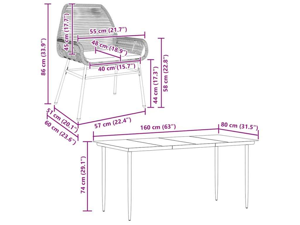 Táto záhradná jedálenská súprava je skvelou voľbou na stolovanie pod holým nebom alebo len tak na oddych v záhrade, na dvore alebo na terase.