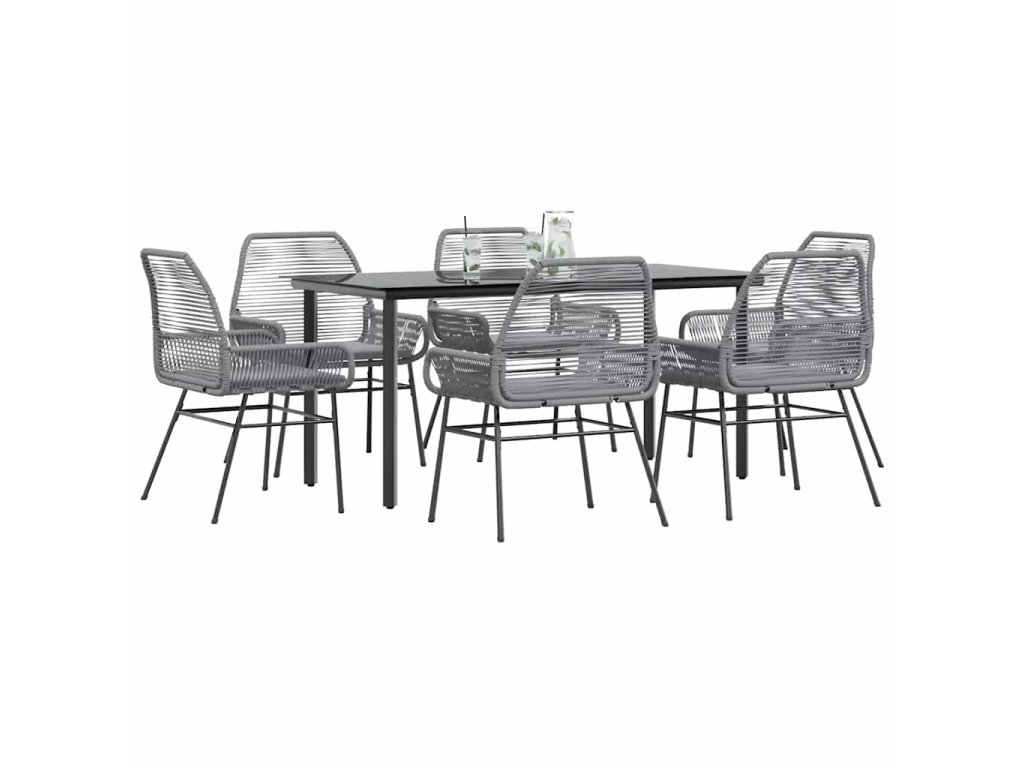 Multidom 7-dielna záhradná jedálenská súprava+podložky, sivá, polyratan