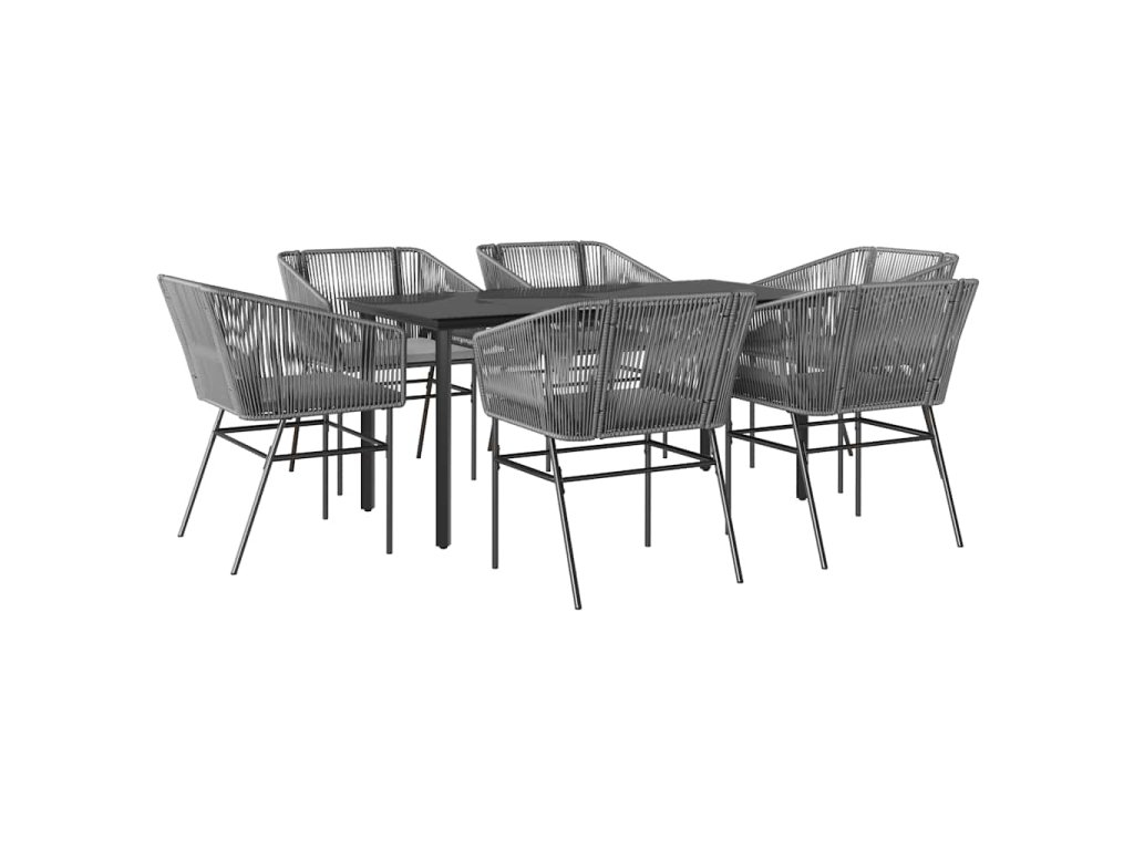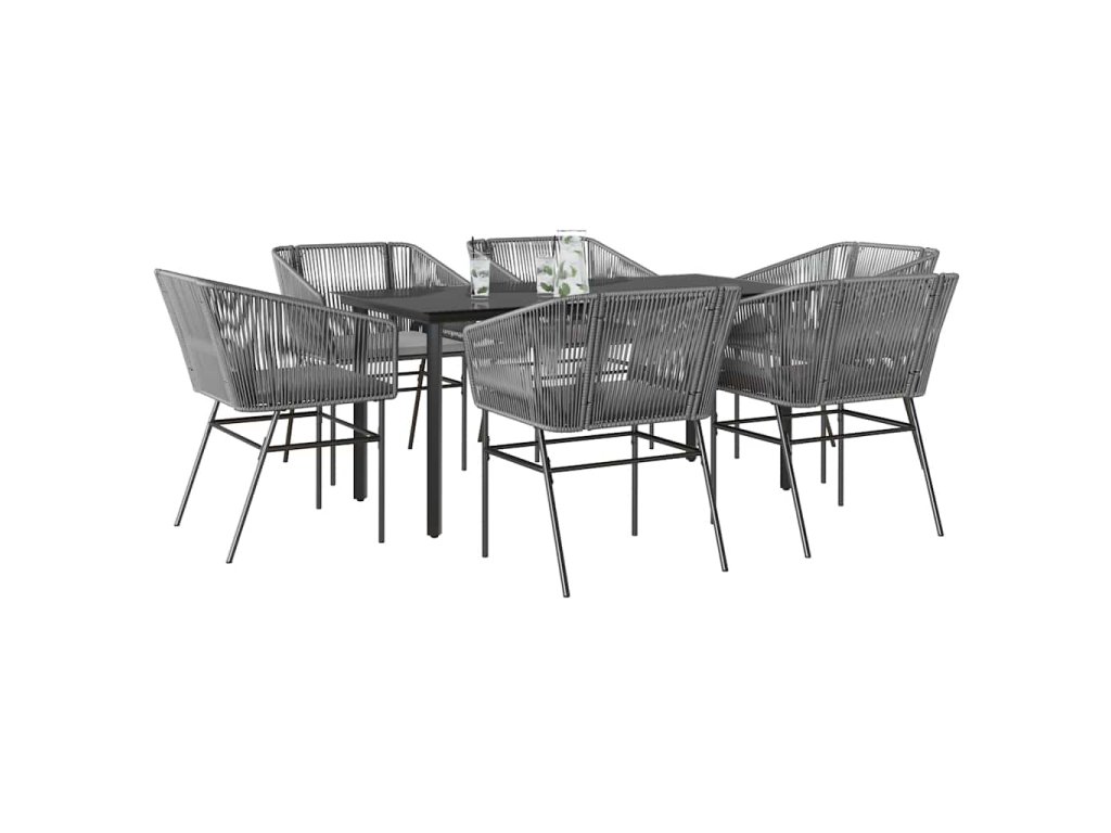 Multidom 7-dielna záhradná jedálenská súprava+podložky, sivá, polyratan