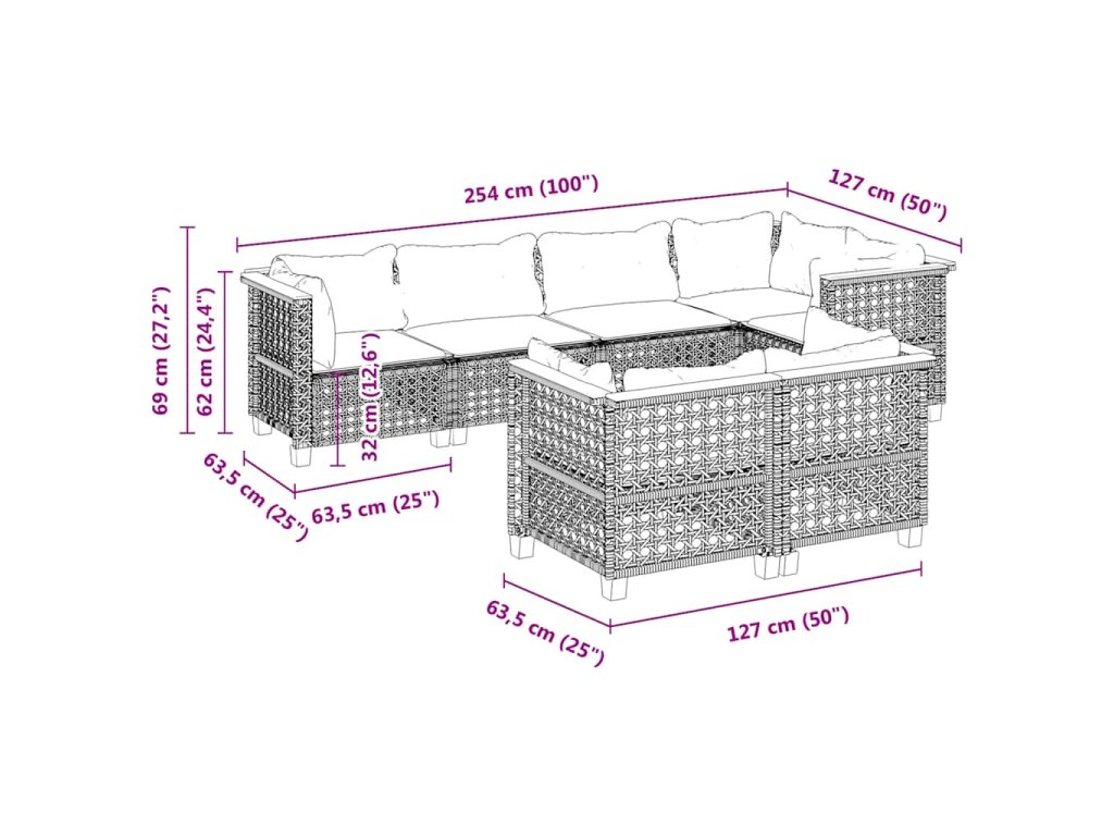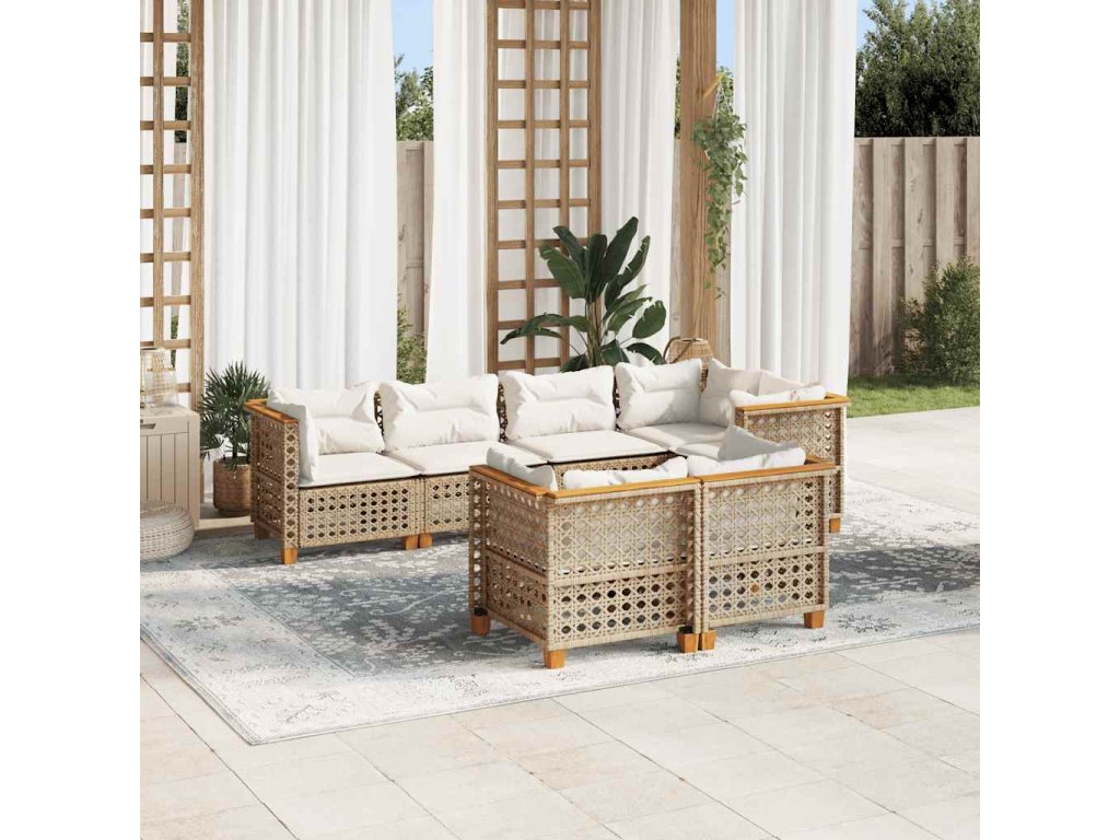 Multidom 7-dielna záhradná sedacia súprava a vankúše béžová polyratan