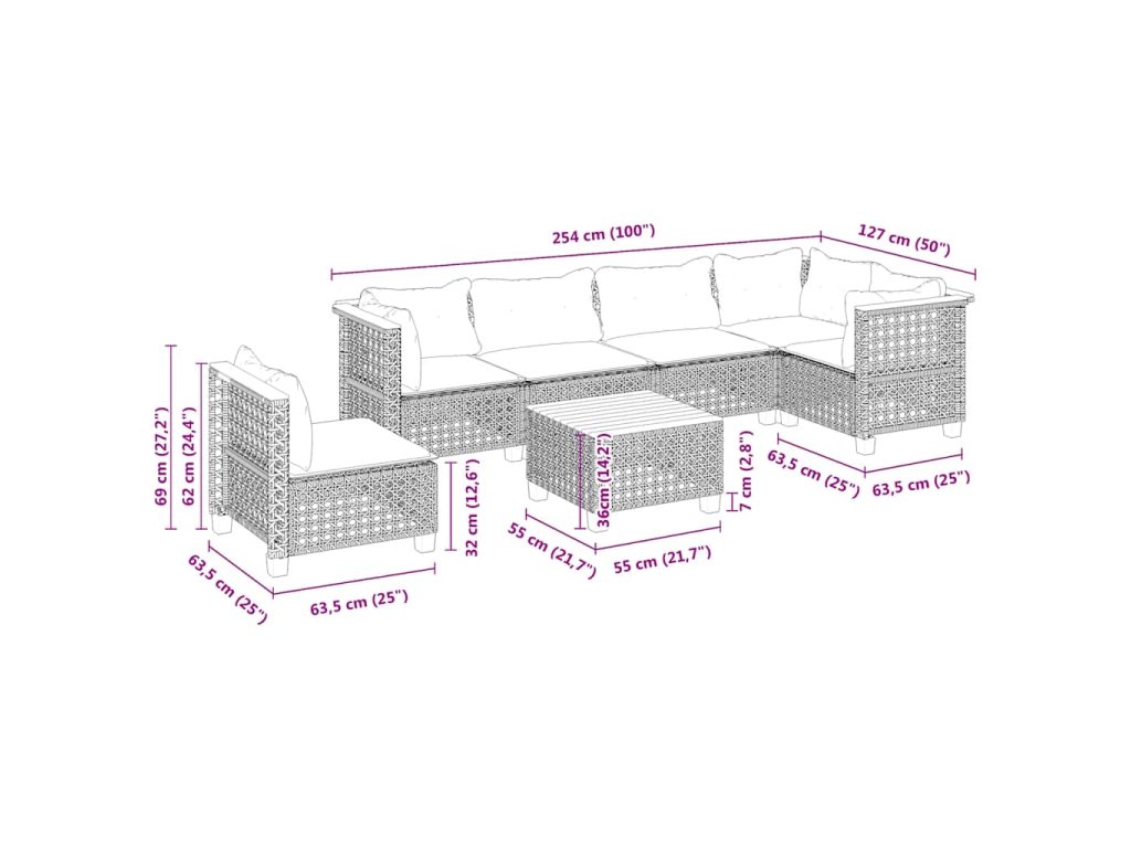 - Modulárny dizajn: Táto súprava vonkajšieho nábytku má modulárny dizajn, vďaka čomu je úplne flexibilná a ľahko sa premiestňuje, aby ste si mohli vonkajší nábytok usporiadať podľa svojich predstáv.