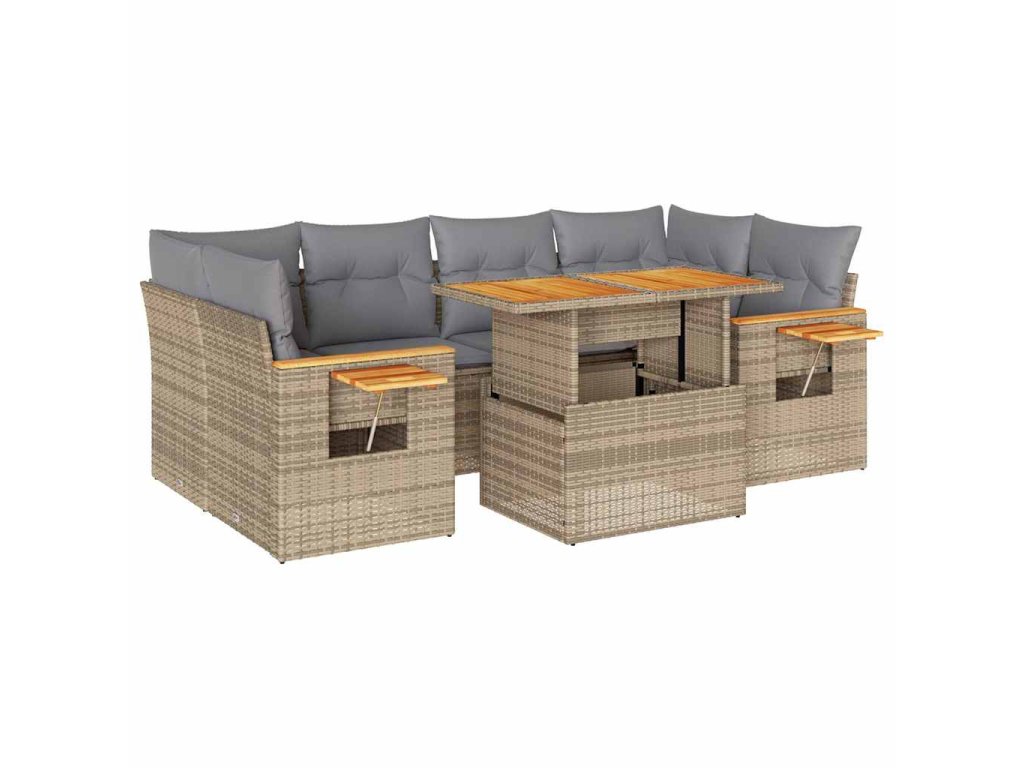 Multidom 7-dielna záhradná sedacia súprava a vankúše polyratan akácia