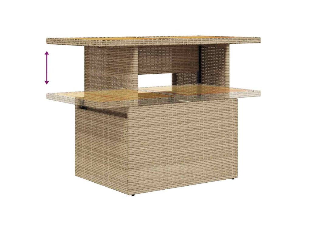 - Materiál: PE ratan, práškovaná oceľ, masívne akáciové drevo s olejovým náterom