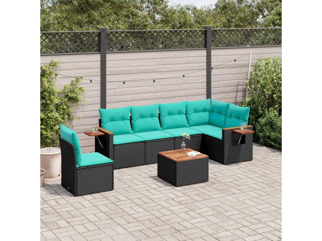 Multidom 7-dielna záhradná súprava pohoviek s vankúšmi čierna polyratan