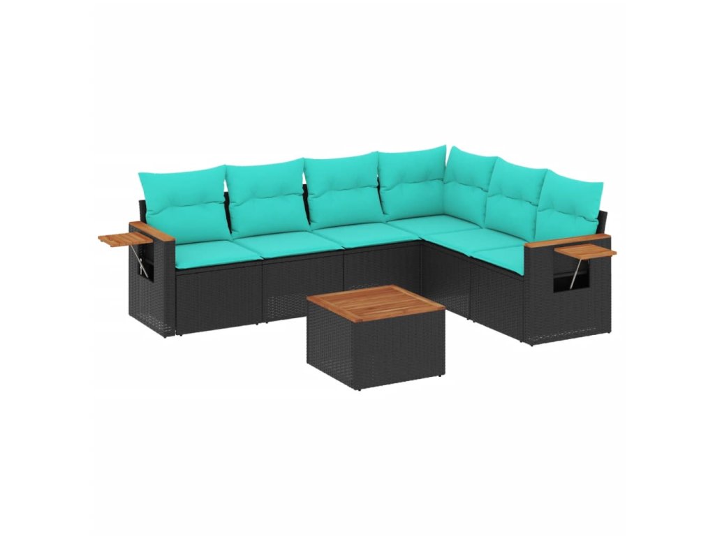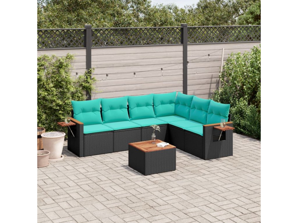 Multidom 7-dielna záhradná súprava pohoviek s vankúšmi čierna polyratan