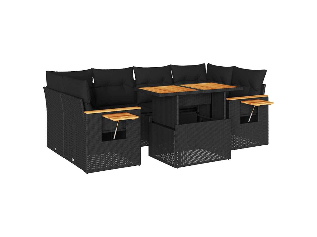 Multidom 7-dielna záhradná súprava pohoviek s vankúšmi polyratan akácia