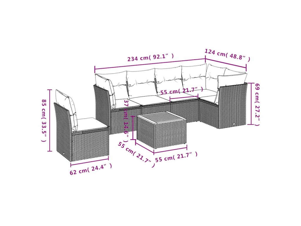 Multidom 7-dielna záhradná súprava pohoviek s vankúšmi sivá polyratanová