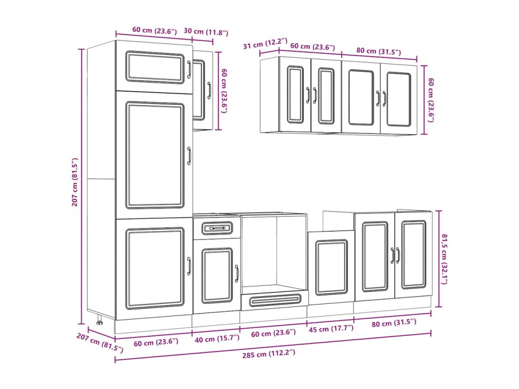 Táto 8-dielna súprava kuchynských skriniek s elegantným dizajnom optimalizuje priestor vo vašej kuchyni a poskytuje dostatok úložného priestoru na vaše osobné veci!