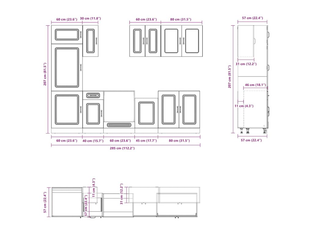 - Veľa úložného priestoru: Súprava kuchynských skriniek má veľa priehradiek a ponúka dostatok miesta na uloženie misiek, tanierov, hrncov a ďalších kuchynských spotrebičov.