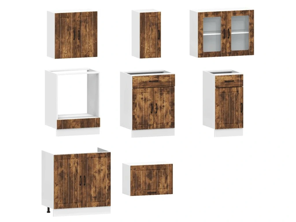 Táto 8-dielna súprava kuchynských skriniek s elegantným dizajnom optimalizuje priestor vo vašej kuchyni a poskytuje dostatok úložného priestoru na vaše osobné veci!