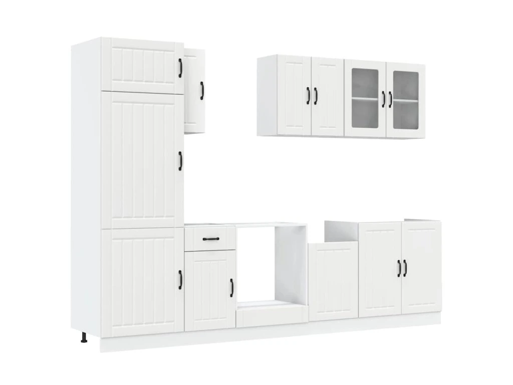 Táto 8-dielna súprava kuchynských skriniek s elegantným dizajnom optimalizuje priestor vo vašej kuchyni a poskytuje dostatok úložného priestoru na vaše osobné veci!