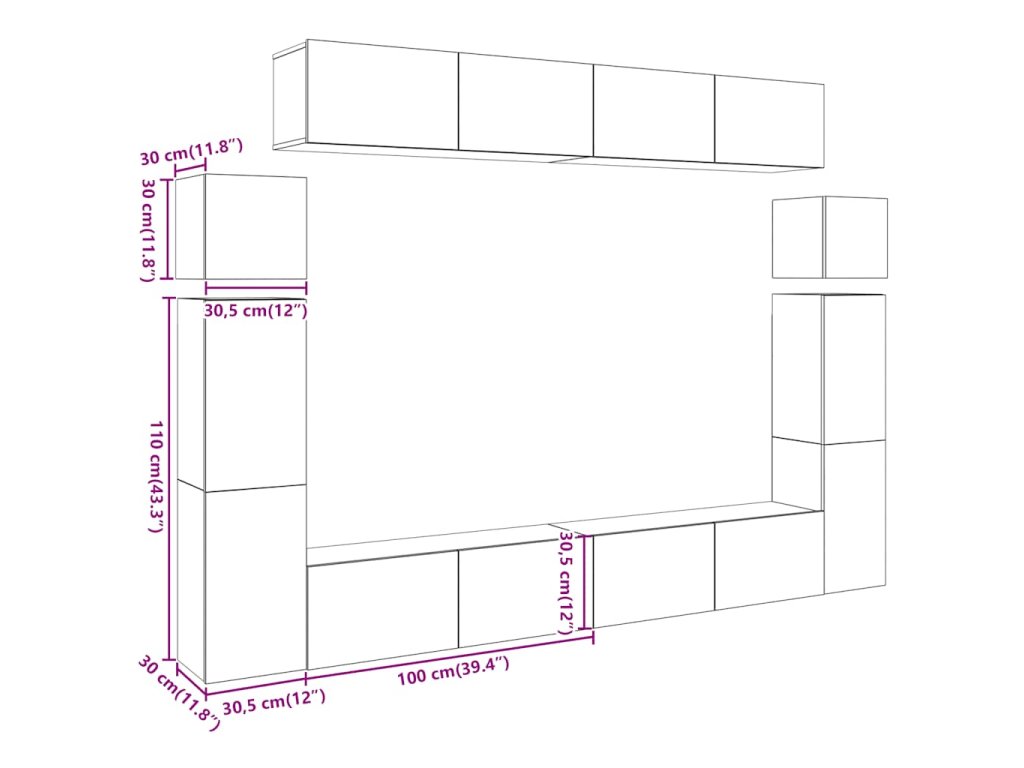 Multidom 8-dielna súprava nástennej TV skrinky, kompozitné drevo