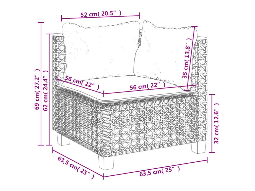 - Rozmery vankúša sedadla (rohový): 56,5 x 56,5 x 3 cm (Š x H x V)