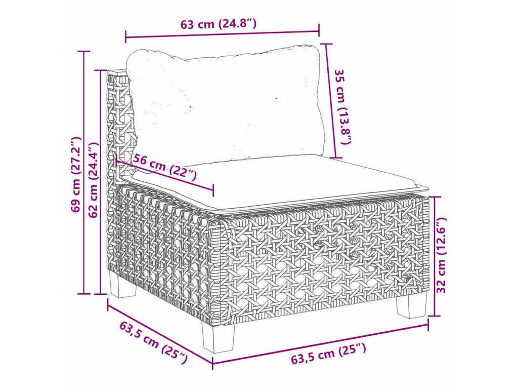 - Rozmery vankúša sedadla (stredový/podnožka): 63,5 x 56,5 x 3 cm (Š x H x V)