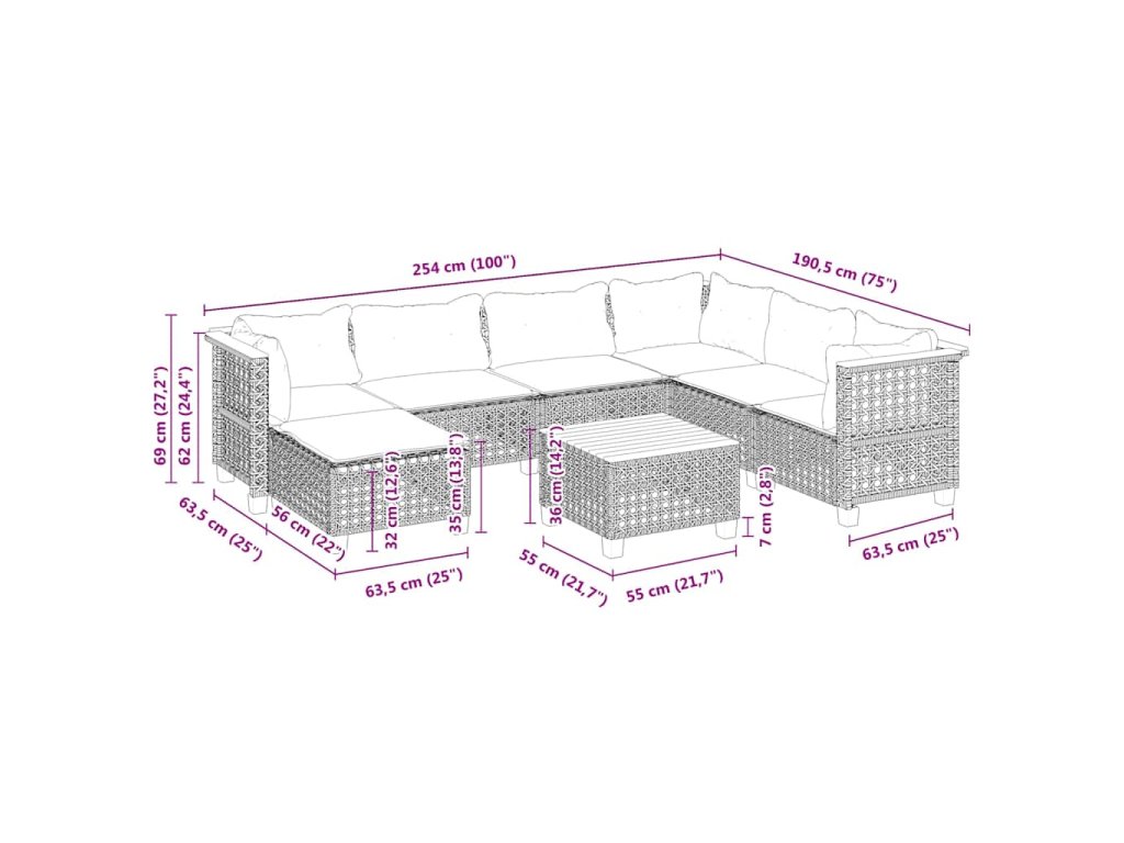 - Modulárny dizajn: Táto súprava vonkajšieho nábytku má modulárny dizajn, vďaka čomu je úplne flexibilná a ľahko sa premiestňuje, aby ste si mohli vonkajší nábytok usporiadať podľa svojich predstáv.