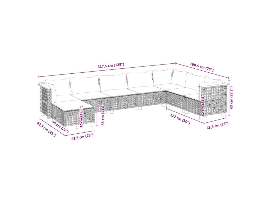 - Modulárny dizajn: Táto súprava vonkajšieho nábytku má modulárny dizajn, vďaka čomu je úplne flexibilná a ľahko sa premiestňuje, aby ste si mohli vonkajší nábytok usporiadať podľa svojich predstáv.