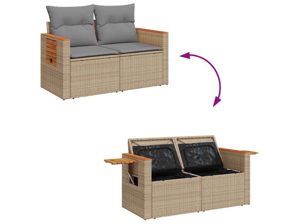 Multidom 8-dielna záhradná súprava pohoviek s vankúšmi polyratan akácia